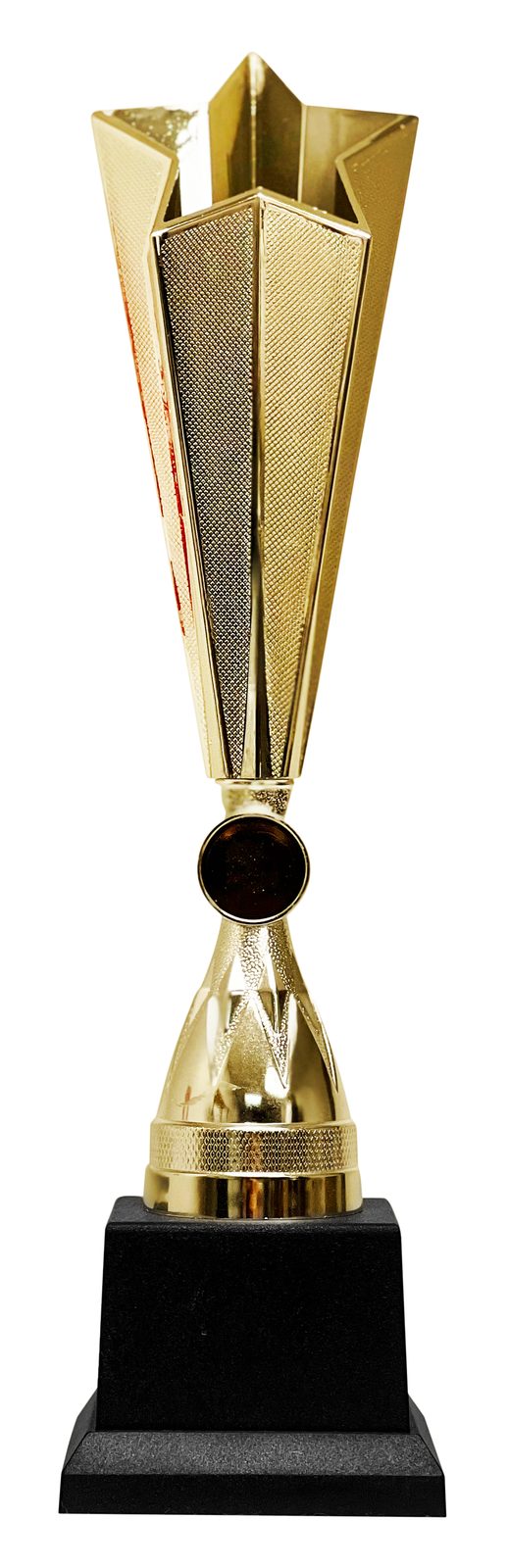 The Tulsa Gold Star Trophy  is an impressive tall value award. Made from a thick premium plastic the star is a hollow structure colored blue on the inside. Mounted onto a PVC weighted base this trophy comes in 3 great heights.