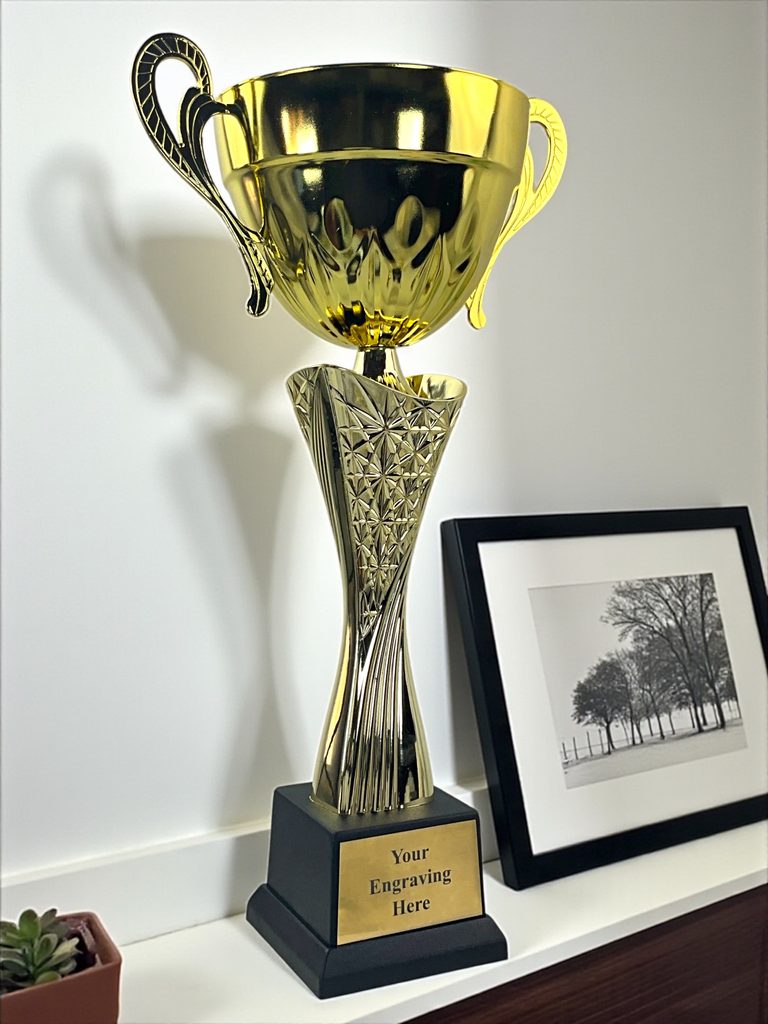 Gold Plastic Trophy Cup with Engraving Plate – Customizable Award