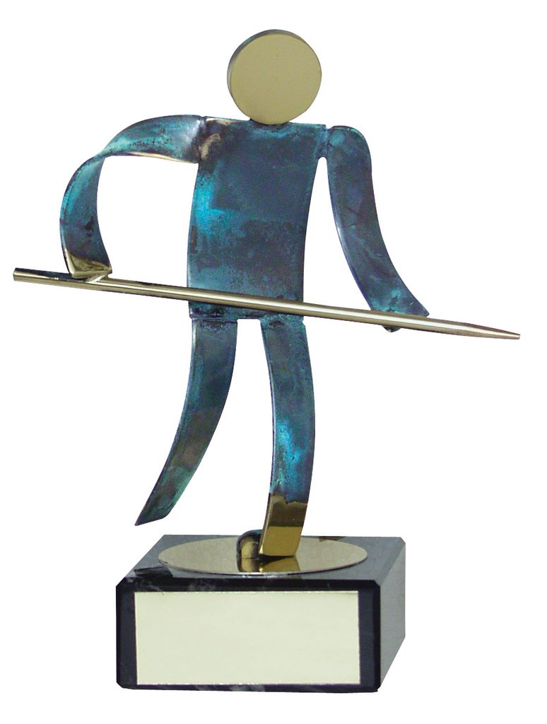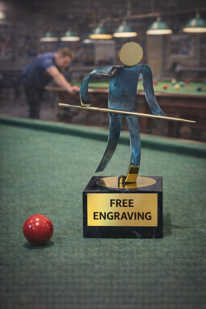 The Toledo Snooker Trophy is an exclusive handmade metal award. This is then mounted onto a high quality black marble base. The award is part of an exclusive collection of awards that are handmade in Barcelona, Spain. Each trophy is hand crafted from high quality metals, including brass, copper, nickel, pewter and steel and are set upon either wooden or marble bases.