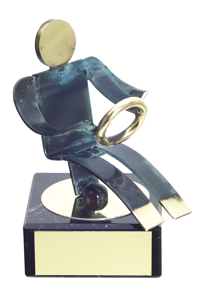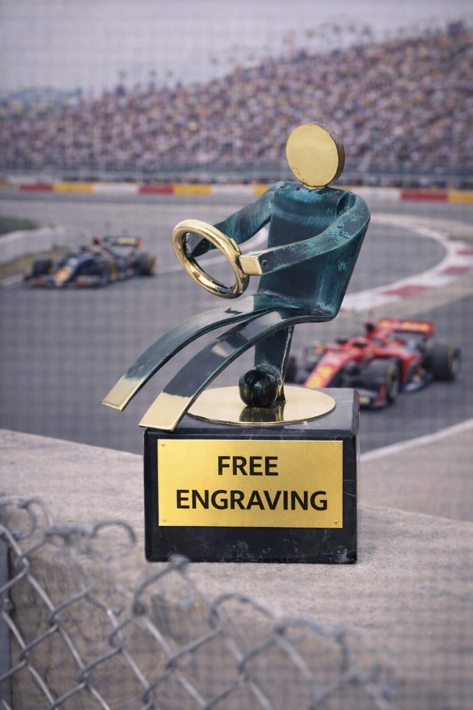 The Toledo Racing Car Driver Trophy is an exclusive handmade metal award displaying a stunning artistic racing car driver. This is then mounted onto a high quality black marble base. The award is part of an exclusive collection of awards that are handmade in Barcelona, Spain. Each trophy is hand crafted from high quality metals, including brass, copper, nickel, pewter and steel and are set upon either wooden or marble bases.