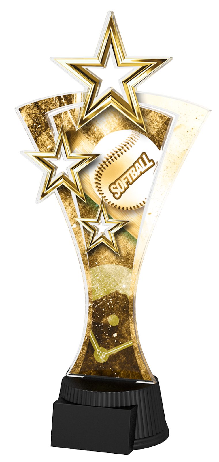 The Toronto Softball Target Trophy is a modern style award. With superb shape this trophy comes to life with a high quality full colour double sided print on 1/4" thick acrylic mounted on a black PVC base.