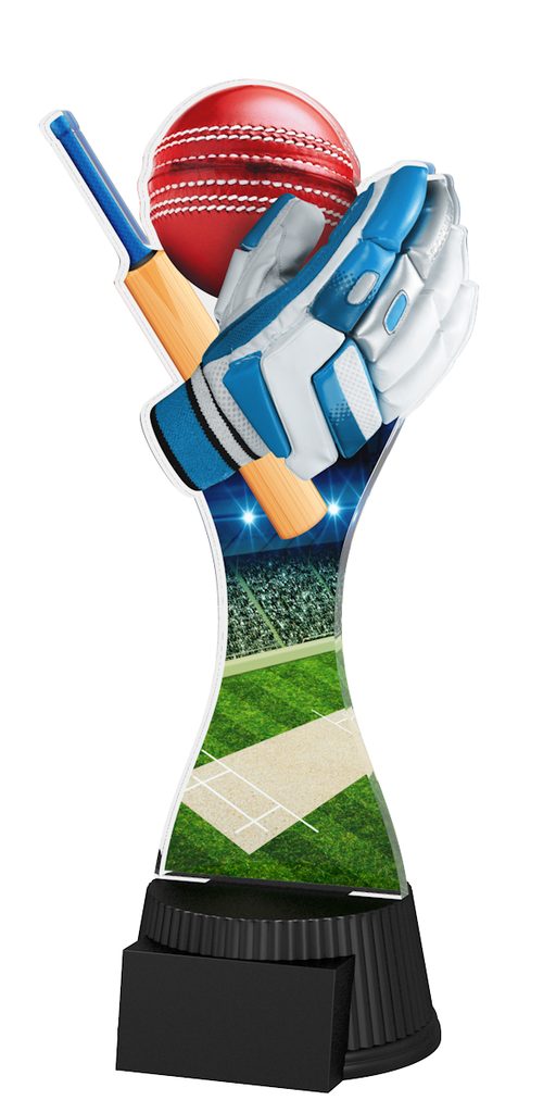 The Toronto Cricket Glove Trophy is a modern style award. With superb shape this trophy comes to life with a high quality full colour double sided print on ¼" thick acrylic mounted on a black PVC base.