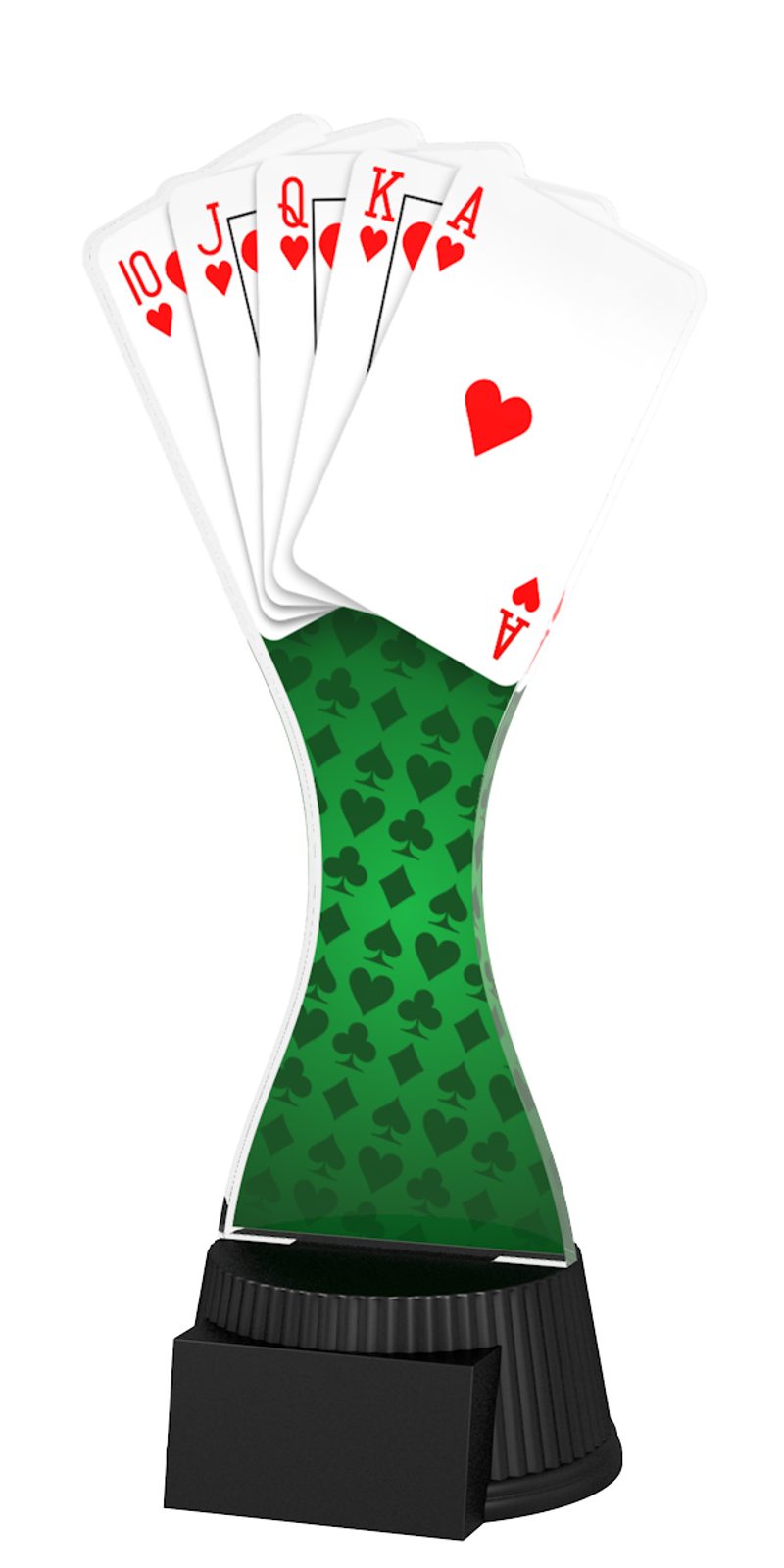 The Toronto Poker Card Game Trophy is a modern style award. With superb shape this trophy comes to life with a high quality full colour double sided print on 1/4" thick acrylic mounted on a black PVC base.