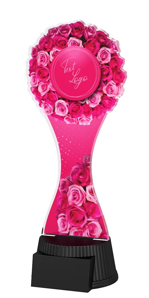 The Toronto Valentine Trophy is a graceful expression of love, elegance, and movement. Inspired by the beauty of dance and the spirit of Valentine’s Day, this modern award features a beautifully sculpted shape brought to life by a high-quality, full-colour double-sided print on 1/4" thick acrylic, perfectly balanced on a sleek black PVC base.