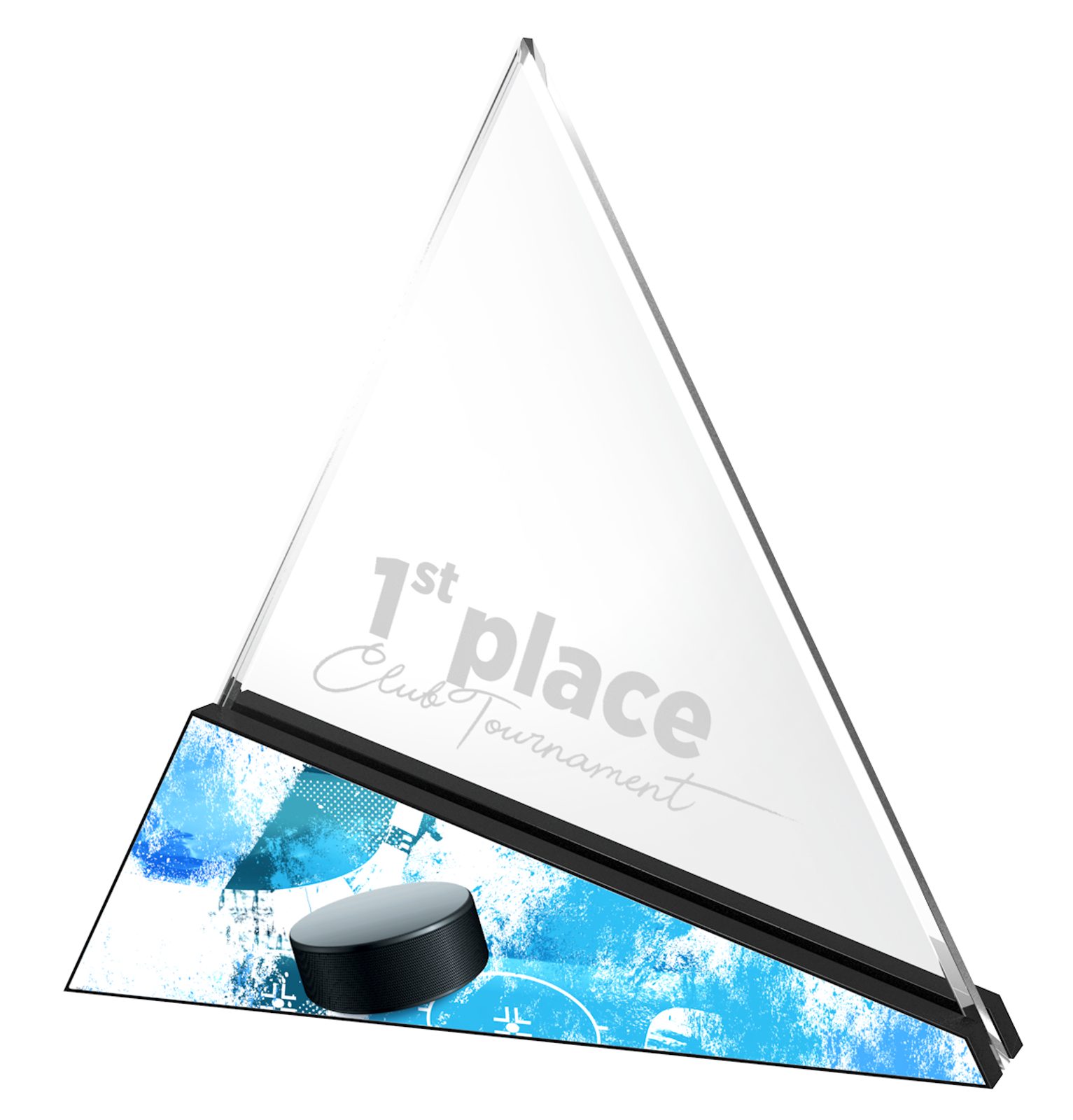 The Urban Printed Ice Hockey Awards is a truly ingenious new in-house designed trophy.  This award is made using 0.4" thick premium acrylic mounted in between two pieces of shaped black 0.4" thick acrylic. This gives the trophy a very professional sturdy base.