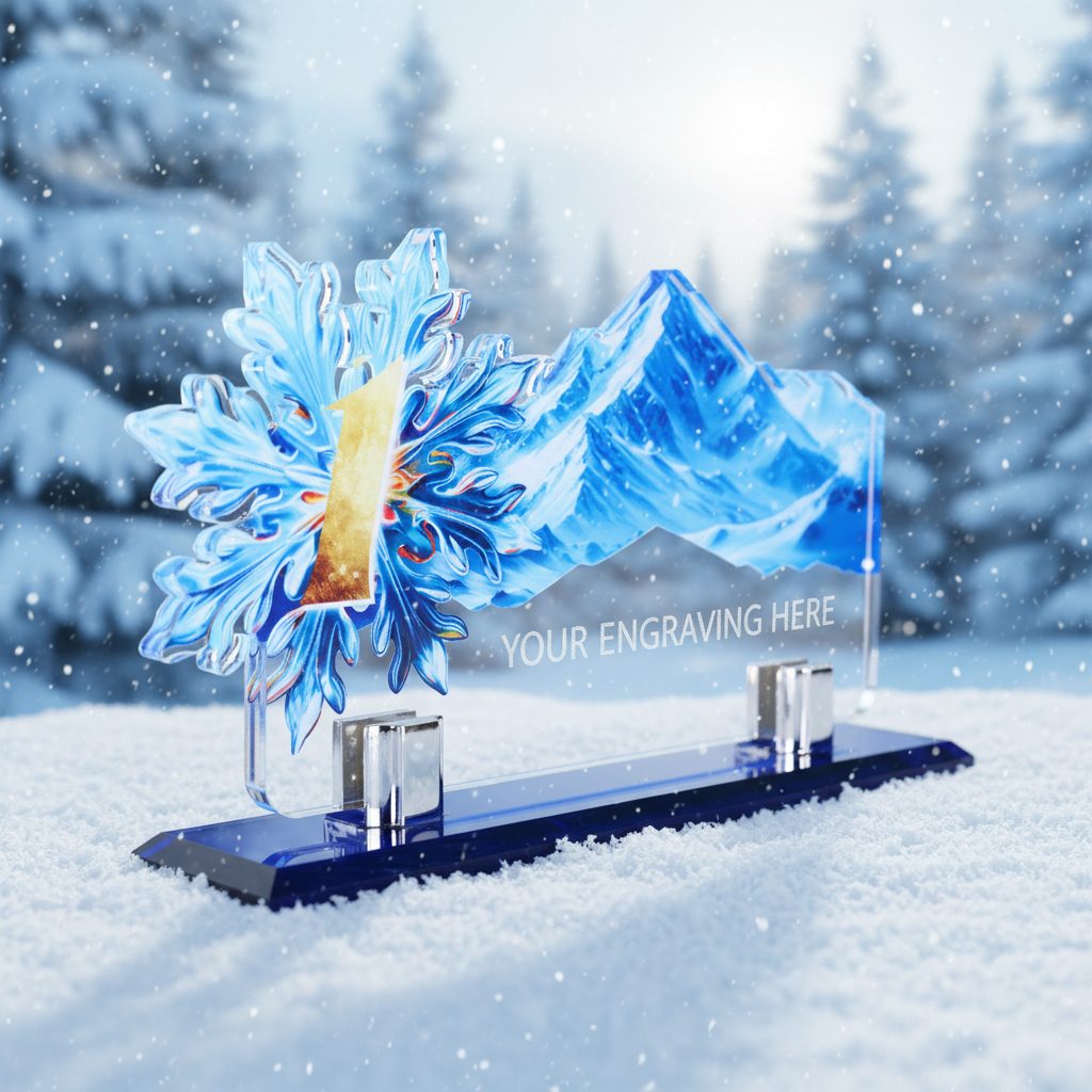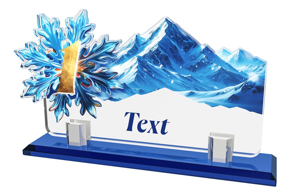 Elegant sports trophy measuring 9 1/4" x 5 3/4", made from a combination of a solid glass base and acrylic body. Ideal for competitions, tournaments and club awards.