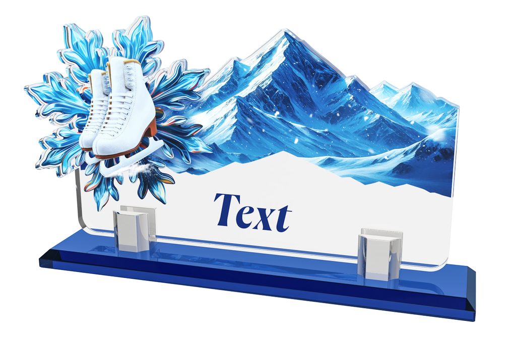 Elegant sports trophy measuring 9 1/4" x 5 3/4", made from a combination of a solid glass base and acrylic body. Ideal for competitions, tournaments and club awards.