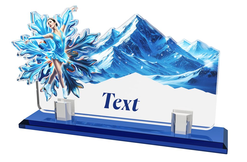 Elegant sports trophy measuring 9 1/4" x 5 3/4", made from a combination of a solid glass base and acrylic body. Ideal for competitions, tournaments and club awards.