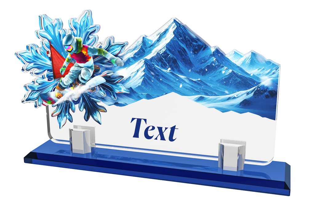 Elegant sports trophy measuring 9 1/4" x 5 3/4", made from a combination of a solid glass base and acrylic body. Ideal for competitions, tournaments and club awards.