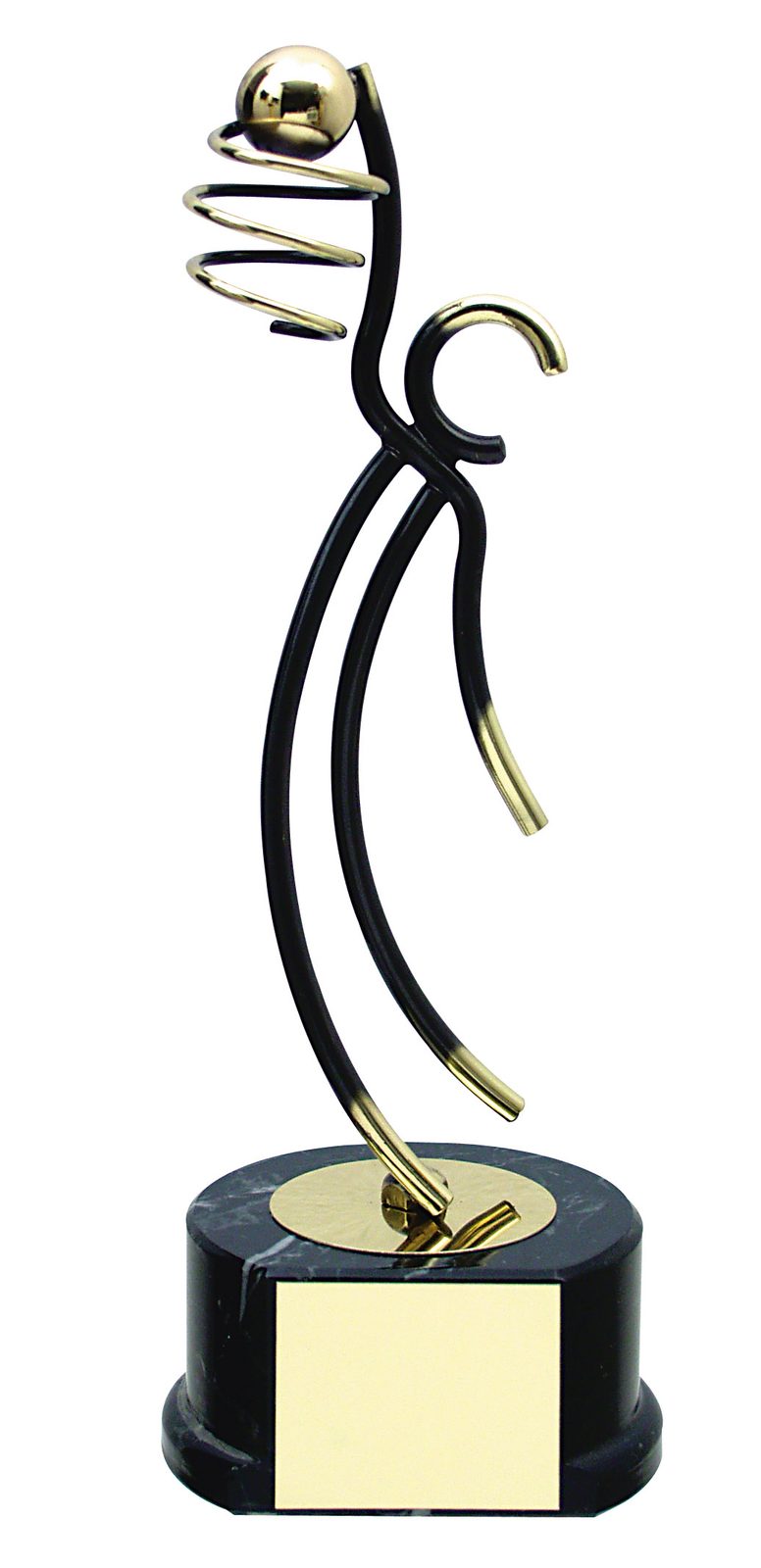 The Valencia Basketball Trophy is an exclusive handmade metal award. This is then mounted onto a high quality black wooden base. The award is part of an exclusive collection of awards that are handmade in Barcelona, Spain. Each trophy is hand crafted from high quality metals, including brass, copper, nickel, pewter and steel and are set upon either wooden or marble bases.