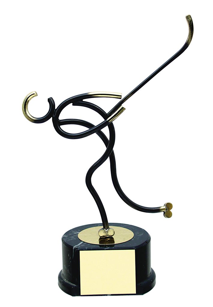 The Valencia Ice Hockey Player Trophy is an exclusive handmade metal award. This is then mounted onto a high quality black wooden base. The award is part of an exclusive collection of awards that are handmade in Barcelona, Spain. Each trophy is hand crafted from high quality metals, including brass, copper, nickel, pewter and steel and are set upon either wooden or marble bases.