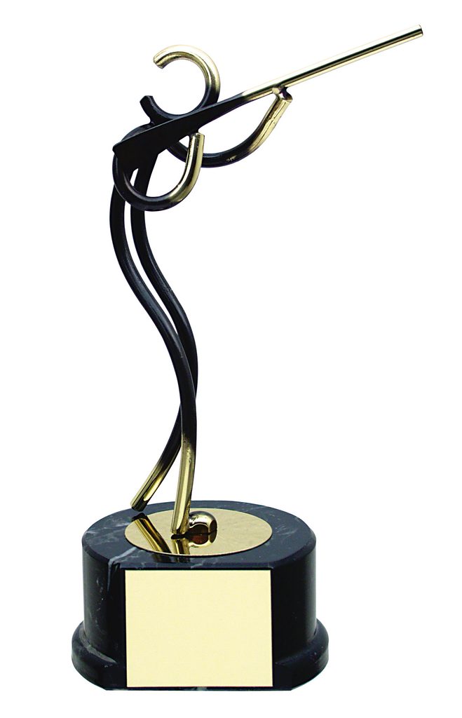 The Valencia Rifle Shooting Trophy is an exclusive handmade metal award. This is then mounted onto a high quality black wooden base. The award is part of an exclusive collection of awards that are handmade in Barcelona, Spain. Each trophy is hand crafted from high quality metals, including brass, copper, nickel, pewter and steel and are set upon either wooden or marble bases.