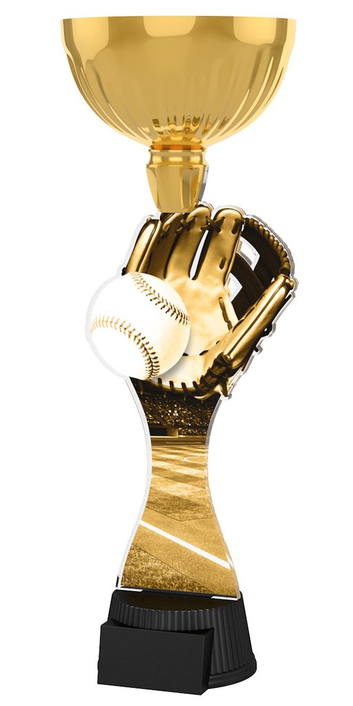 The Vancouver Classic Baseball and Glove Gold Cup Trophy will be the centerpiece in any presentation. This trophy features a high quality sepia-style print on the reverse side of 1/4" acrylic, with a gold metal cup, all mounted on a circular and weighted black PVC base.