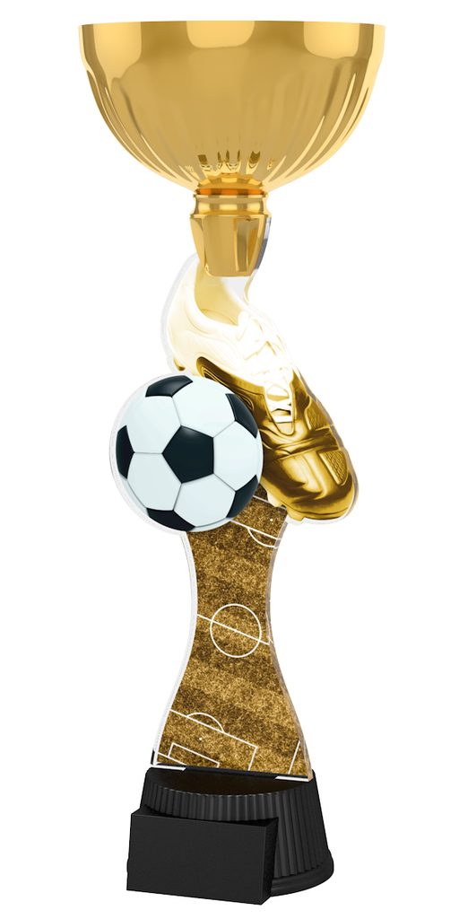 The Vancouver Classic Soccer Boot and Ball Gold Cup Trophy will be the centerpiece in any presentation. This trophy features a high quality sepia-style print on the reverse side of 1/4"acrylic, with a gold metal cup, all mounted on a circular and weighted black PVC base.