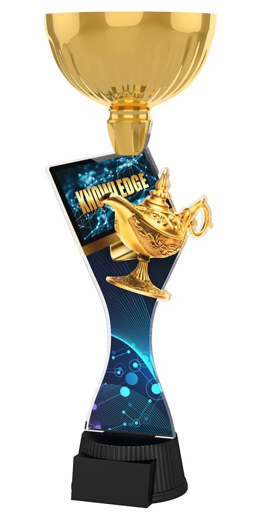 The Vancouver Magic Lamp Quiz Gold Cup Trophy will be the centerpiece in any presentation. This trophy features a high quality full color print on the reverse side of 1/4" acrylic, with a gold metal cup, all mounted on a circular and weighted black PVC base.