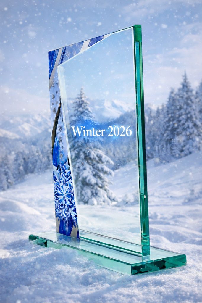 Celebrate winter excellence with this stylish glass trophy.