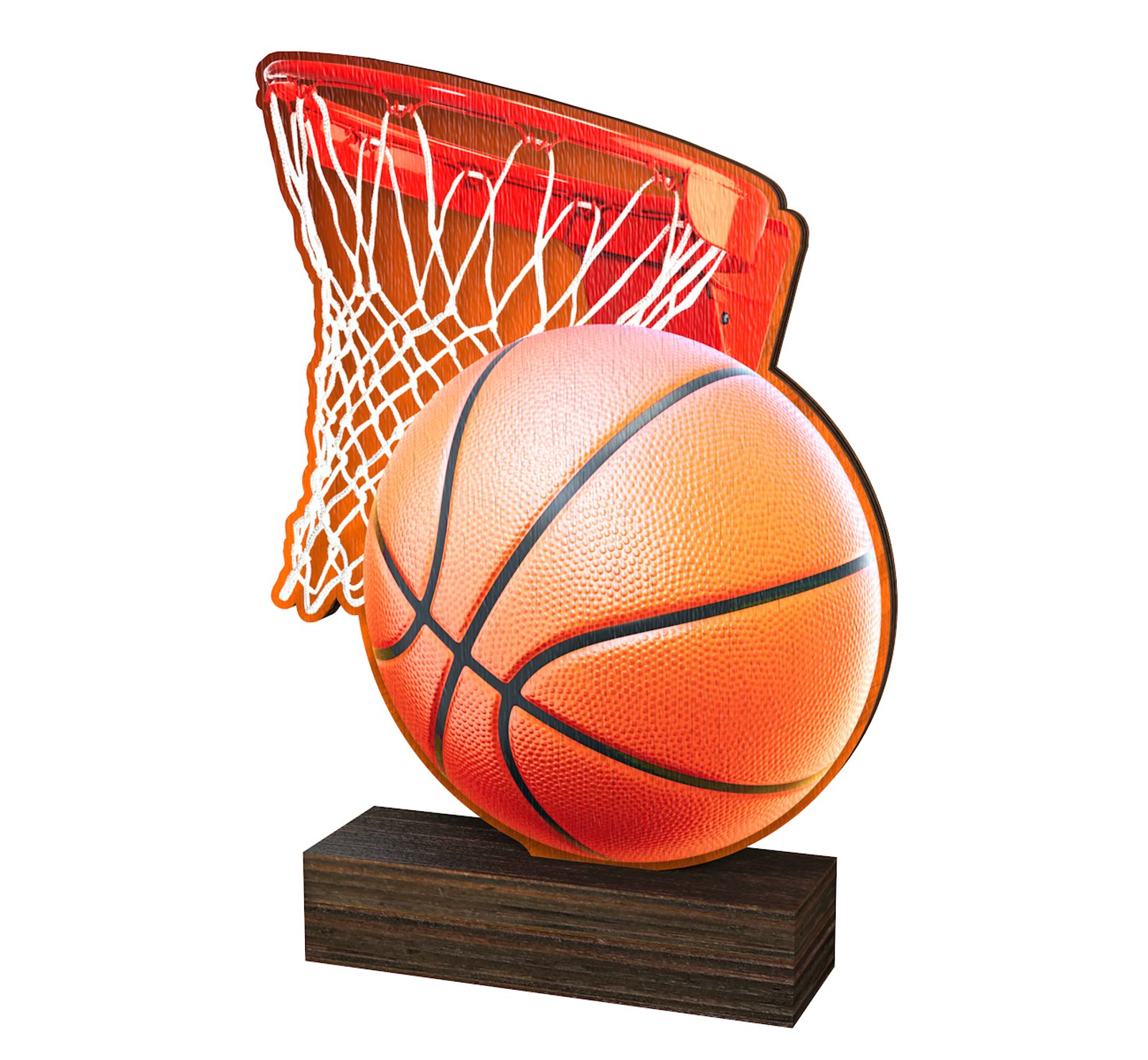 WF 018 Basketball Real Wood Trophy  is a brand new eco friendly award made from 5/16" thick natural birch plywood, mounted on a thick wooden rectangular base. A sustainable product that is part of a collection designed and manufactured in our own factory. Not only for the environmentally conscious, this trophy will be the centrepiece in any presentation.