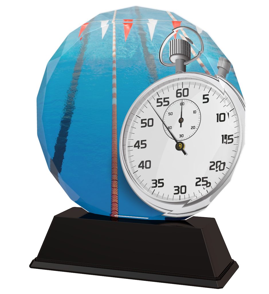 Introducing the Zodiac Swimming Trophy - a contemporary and stylish award that is sure to impress. This trophy boasts a sleek and sophisticated design, brought to life by a high-quality full-color print on the reverse side of the 5/16" thick acrylic. The trophy is mounted on a sturdy black PVC base, adding to its overall elegance and durability.